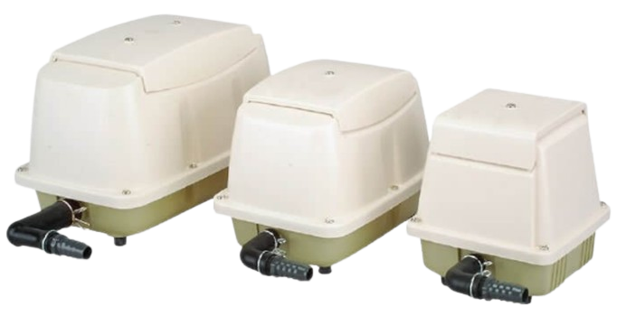 Uso en exteriores. Caudal de 1.5 – 5 CFM a 2 PSI de presión según modelo. Mecanismo móvil de pistón, Hasta 8 años de vida continua. Incluye cable, manguera y conector barbado de salida de 3/4″.